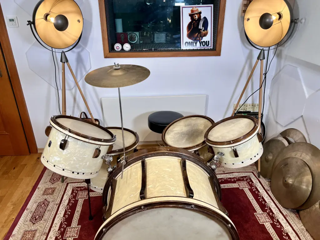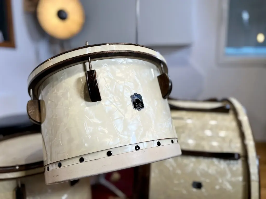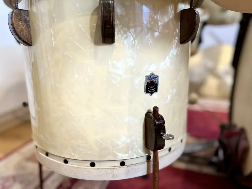 I purchased this kit from Joey Mekler, and since then it has become one of the centerpieces of my collection – the sort of set you not only admire as a historical object, but also actually play to understand how mid-1940s Leedy drums really sounded.